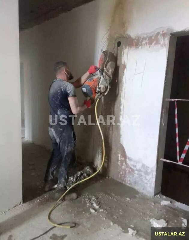 10 Azn Beton kəsmə deşməm kəsinti dağıntı işləri kəsmək dağıtmaq sökmək qapə pəncərə yerləri kanalar kəsmək beton beton işləri görilir dəlik açılır dəlik açma işləri beton kəsintisi sökintisi daşınması qazıntı işləri beton