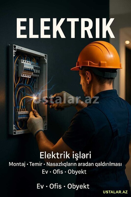 Salam. Mən elektrik işləri üzrə peşəkar ustayam və həm evlərdə, həm mağazalarda, həm də ofis və avtosalon kimi obyektlərdə bütün növ elektrik işlərini həyata keçirirəm. İşlərim tam təhlükəsizlik qaydalarına uyğun, səliqəli və zəmanətli şəkildə görülür.