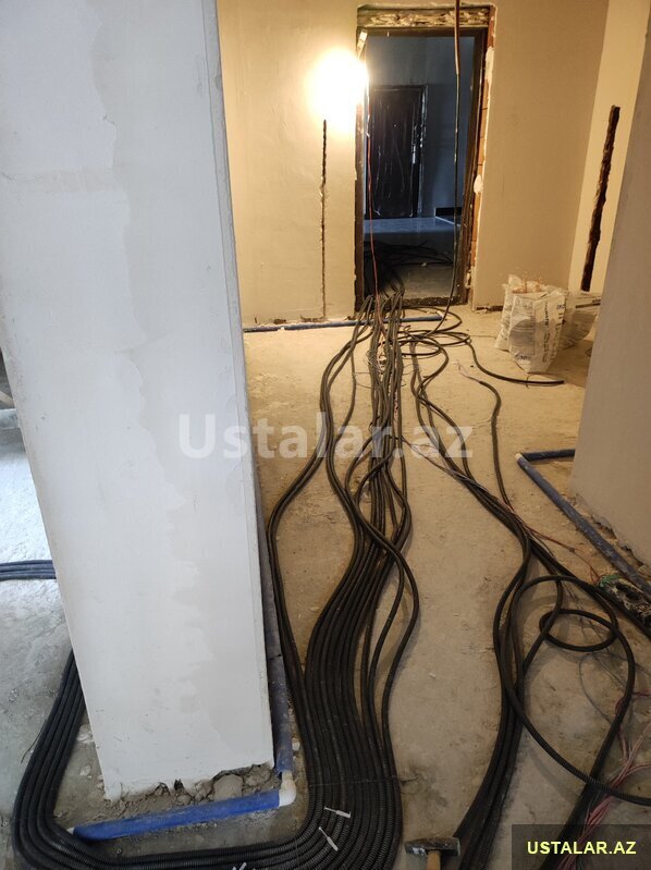 Elektrik xətlərinin çəkilməsi, köməkçi sayğacların quraştirilmasi.