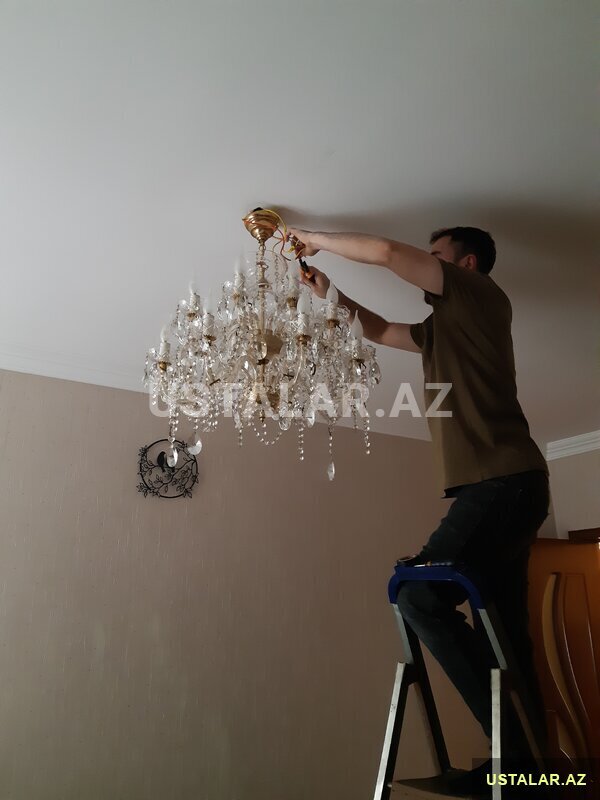 15 Azn Ev üçün hər növ elektrik usda xidməti (zəmanətli, müasir və zövqə uyğun). Çılçıraqların, (lüstrlərin) qurulması və təmiri. Evin ümumi elektriklə təhciz olunması, (montaj) damafon və kameraların qurulması televizor