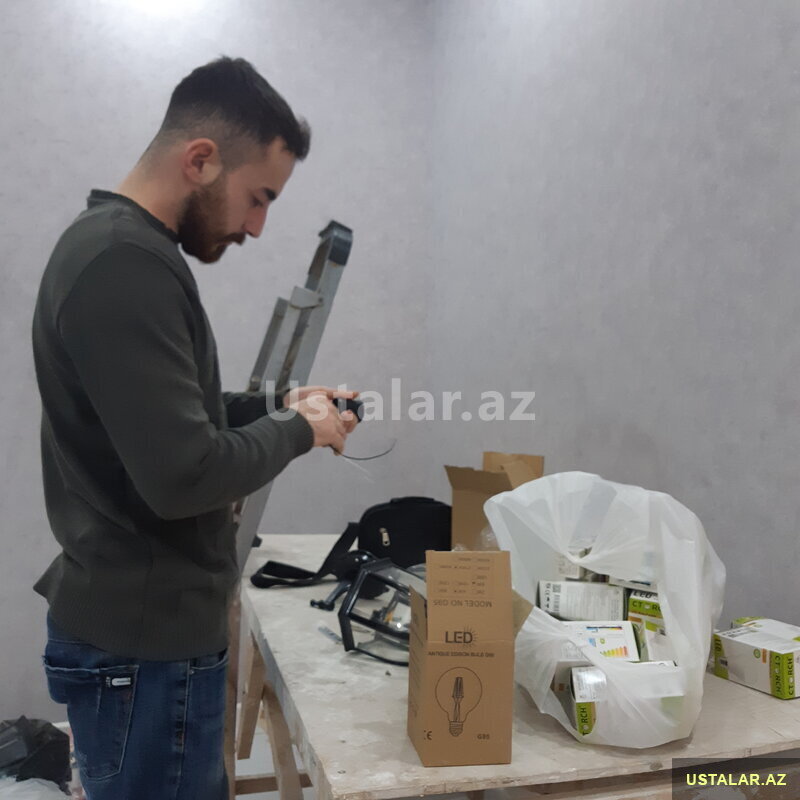 10 Azn Elektrik işlərinin 0 dan görülməsi. Rozetka.vıkluçatellərin.işıqların.lüsturların quraşdırılması və dəyişdirilməsi.Baş verən qısa qapanmaların tapılması və s.İşlər yüksək keyfiyyətlə və qarantili şəkildə görünür.7/24