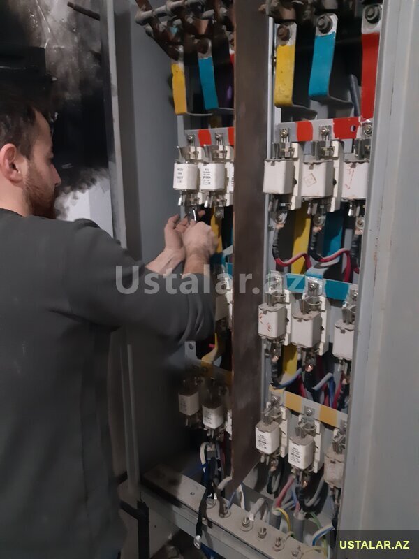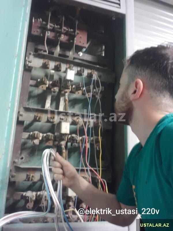 (380 V) 3 faz elektrik kabelleri, (220 V) elektrik açarları termik role, kontaktör, puskater şit, Çilçiraq, Listura Kulçatellerin, Spot, Bra, Plafon, Gizli İşıq, Razetka, Avtomat, Şit Quraşdırılmasını edirəm