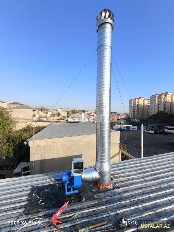 Havalandirma sistemlerinin qurasdirilmasi, temiri, servisi, borularin sifairisi ve matorlarin satişi