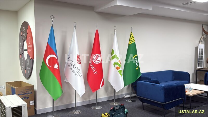 Makam Bayraqları: Ofis, rəsmi qəbul otaqları və kabinetlər üçün şax atlazdan hazırlanan lüks görünümlü bayraqlar.