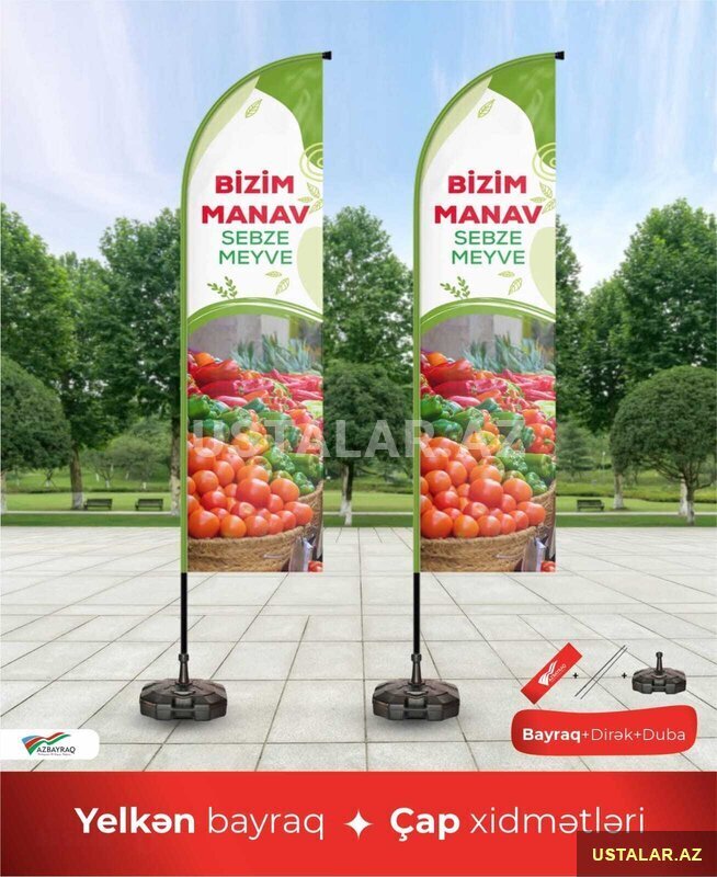 Dövlət və Loqolu Bayraqlar: Azərbaycan, Türkiyə və digər ölkələrin bayraqları, həmçinin şirkətinizin loqosu əks olunmuş xüsusi çap sifarişləri.