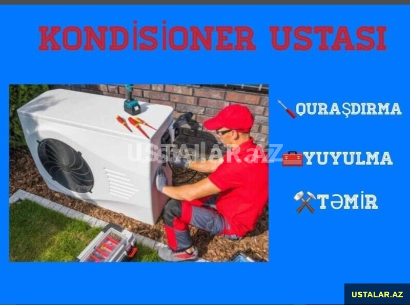 15 Azn Kondisioner Ustasi xidməti görülür. Hər növ kondisionerlərin Təmiri və Quraşdırılması. Yükəsk xidmət və Peşəkar ustalar ilə sizə ən münasib kondisioer temiri xidməti götəririk.