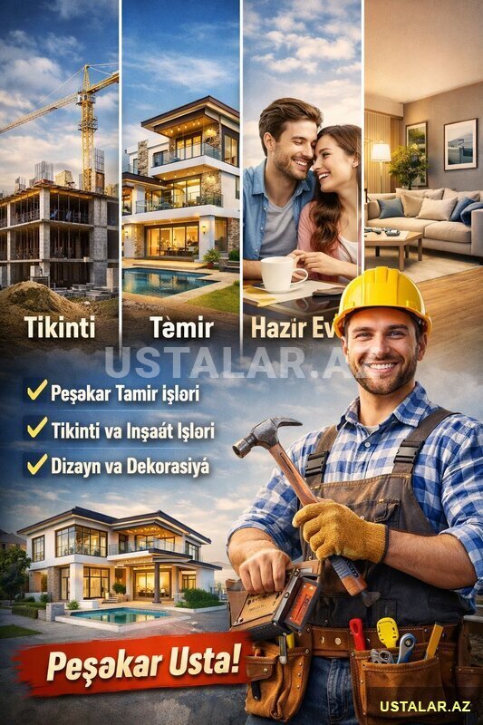 təmir, tikinti, ustalar, ev təmiri, mənzil təmiri, tikinti işləri, dizayn, interyer dizayn, usta xidməti, alçıpan, boya işləri, kafel metlax, santexnik, elektrik işləri, ev tikintisi, villa tikintisi, obyekt təmiri, remont, стройка, ремонт квартир, мастер, строительство