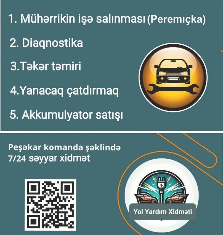 24/7 peşəkar komanda şəklində avtomobillərə Səyyar xidmət göstəririk.Qiymət 10 azn.Xidmətə daxildir: