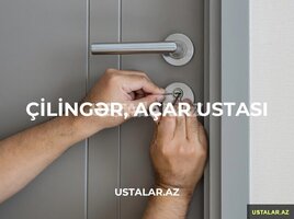 5 Azn Hər cür qapıların açılması və təmiri (Ev, Seyf, və.s) Hər növ zamokların və açarların təmiri İstədiyiniz saatda zəng edə bilərsiniz. Gördüyümüz işə qarantiya veririk ACAR USTASI, ÇİLİNGƏR