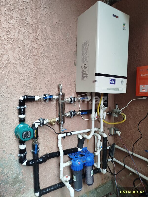 Istilik sistemlərin kombi radiator istipol xətlərinin çəkilməsi və quraşdırılması.