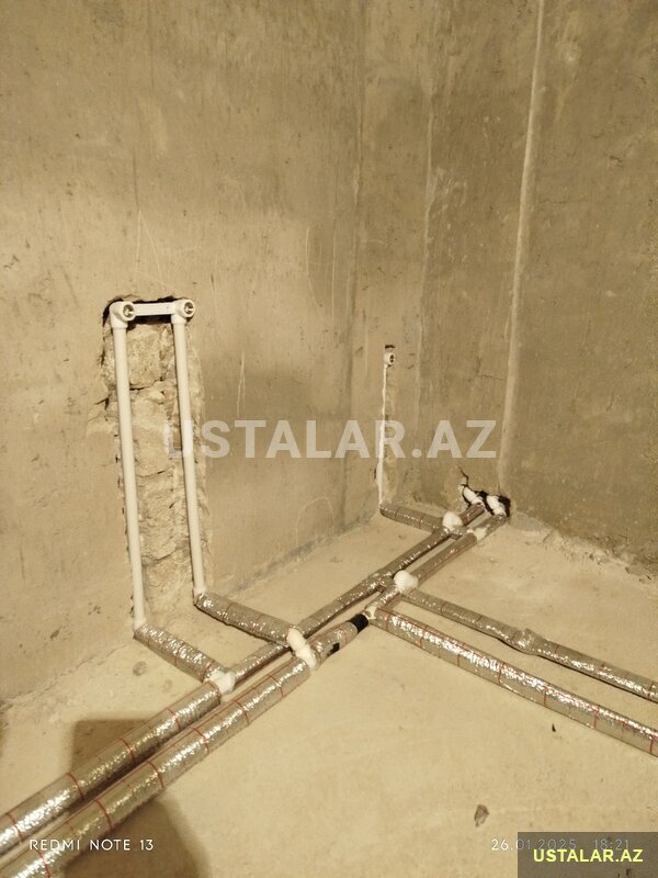 Xətlərin çəkilməsi: İsti və soyuq su xətlərinin sıfırdan çəkilməsi və yenilənməsi.