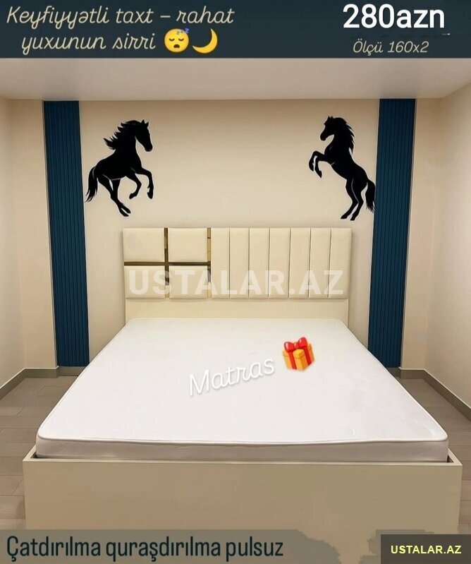 ŞirkətYataq mebeli sifarişlə hazırlanır!Evinizə rahatlıq və gözəllik qatacaq unikal dizaynlar.İstədiyiniz rəng, ölçü və material seçimi mövcuddur.Peşəkar usta işi - keyfiyyətə zəmanət!