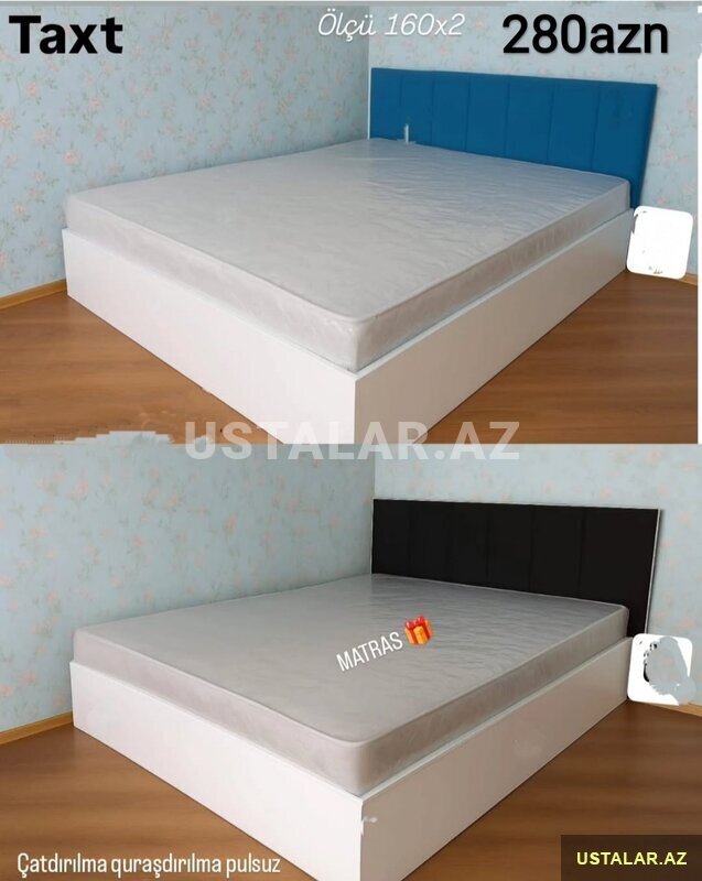 8 Aznİkimərtəbəli çarpayı Sifarişlə hazırlanır Rəng seçimi var Ölçü 80/180sm Matraslar hədiyyə Qiymət 340azn Şəhərdaxili çatdırılma pulsuz