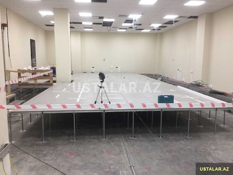 Hər növ yüksəldilmiş döşəmə işlərinin görülməsi.Döşəmə sistemi ofis və server otaqları üçündür.Həmçinin kovralitlətin döşənməsi.